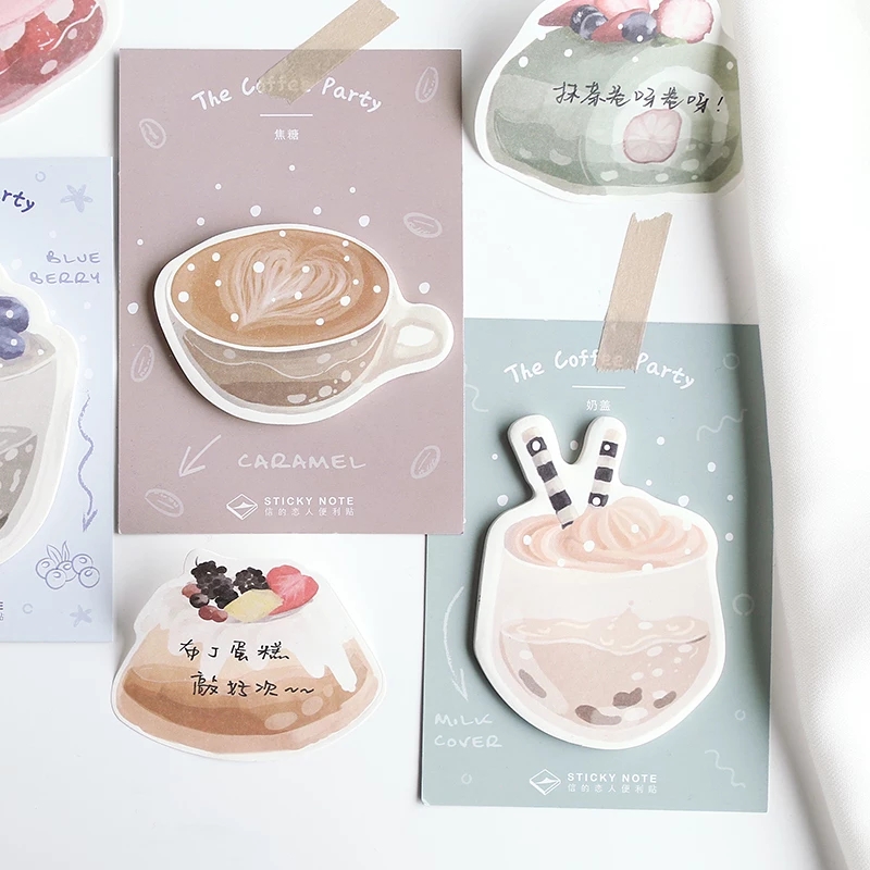 Do you like going to a dessert cafe? These sticky notes will bring back the most quintessential feeling of sitting at the cafe with your cup of coffee and a yummy dessert while looking out the window to a beautiful scene. There are 8 different desserts and drinks designs, click through the link to see them all!