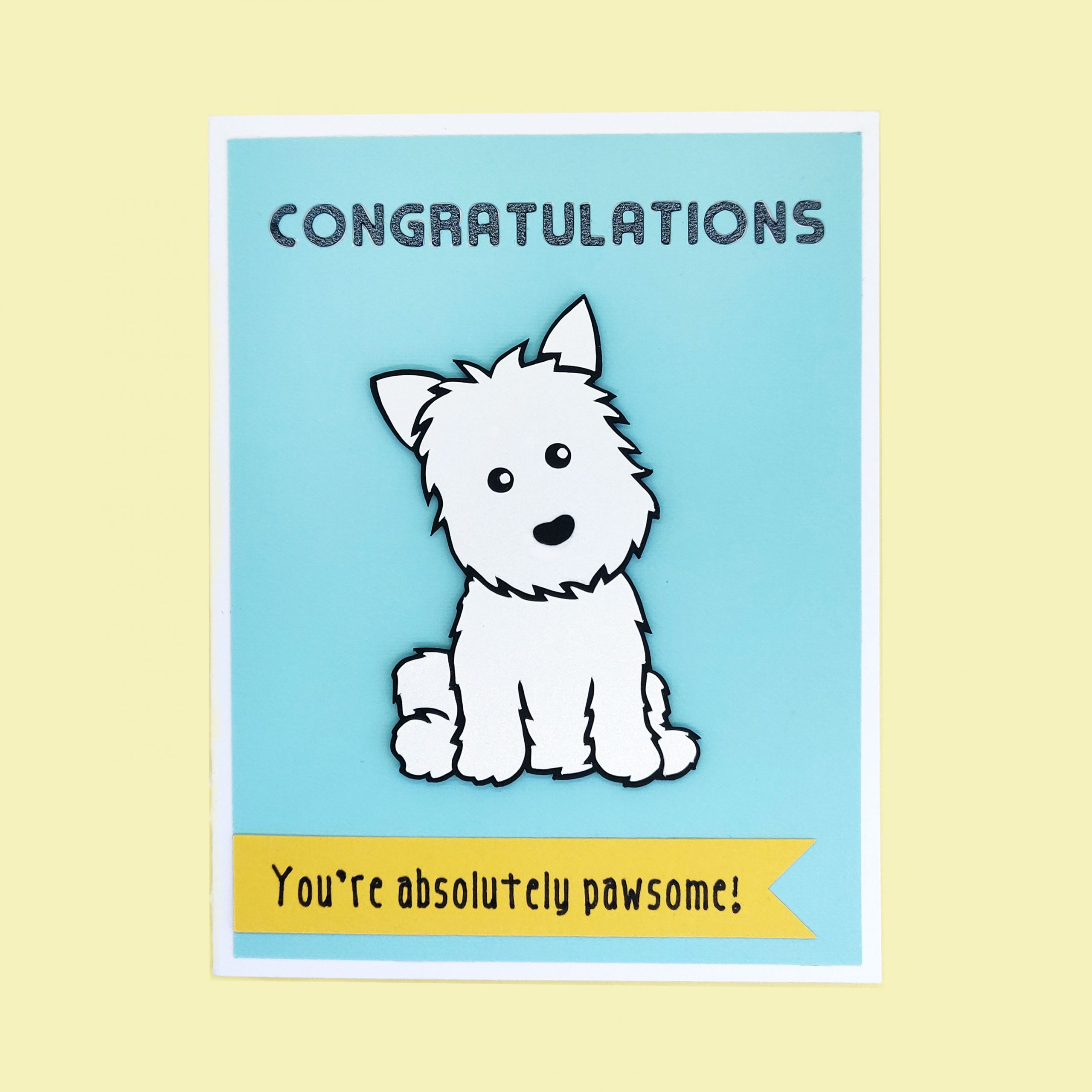 An adorable doggy ready to send a special card to that absolutely pawsome person!